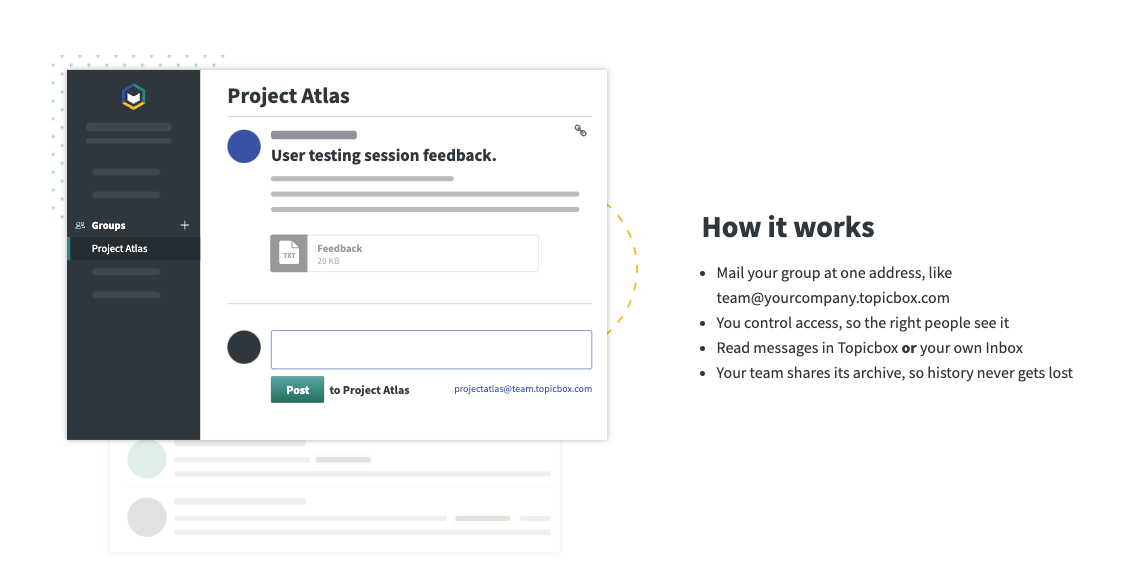 팀원들은 Topicbox를 통해 중요한 이메일을 공유하고,