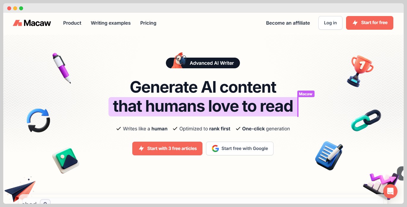 Macaw는 SEO에 최적화된 자연스러운 콘텐츠를 빠르게 제작할 수 있도록 돕는 도구예요.